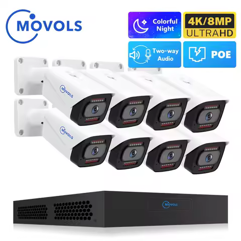 MOVOLS 4K 8MP POE Security Camera System 8CH P2P AI Video Surveillance Kit Two Way Audio Outdoor Home 8MP IP Camera CCTV Nvr Set