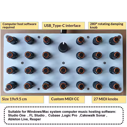 27-Knob MIDI CC Controller USB-C Interface Music Host Custom CC Information Volume fit fot Studio One,FL Studio,Cubase,Logic Pro