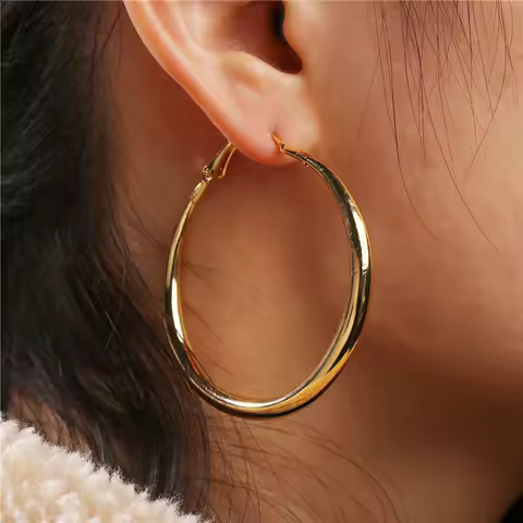2025 New Women's Gold color Large Hoop Earrings (one Pair) Simple Smooth Geometric Round Earrings Stylish Everyday Accessories