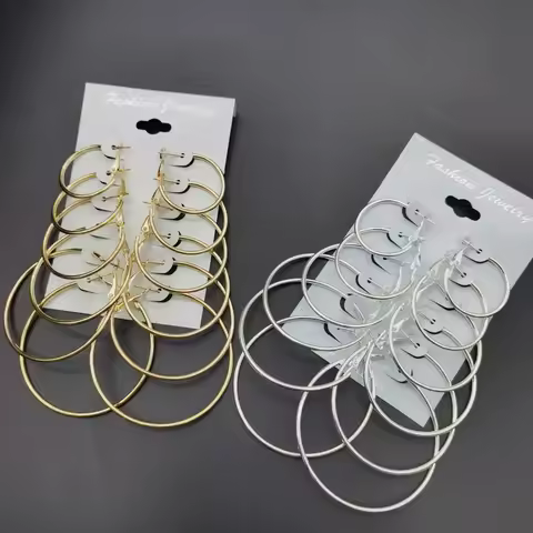6Pairs Hoop Earrings Set Big Circle Earrings Jewelry for Women Girls Ear Clip Punk Style Earrings Fashion Jewelry Accessories